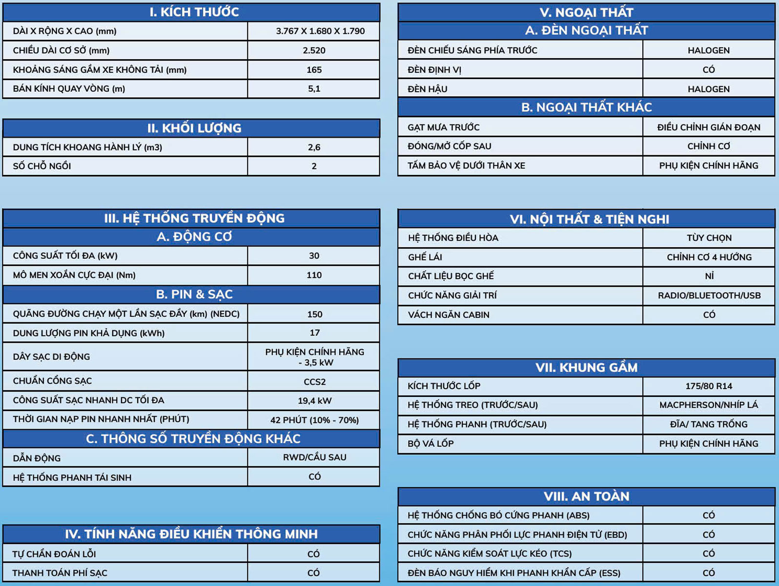 VinFast EC Van xe tải điện đô thị nhỏ gọn, nổi bật với khả năng di chuyển linh hoạt sở hữu nhiều ưu điểm vượt trội: Tải trọng trên 600kg, khoang chứa hàng lên tới 2.600L. Di chuyển tối đa 150km/lần sạc, sạc từ 10% lên 70% trong vòng 42 phút, Công nghệ an toàn chủ động: ABS, EBD, TCS, ESS. Dành cho các doanh nghiệp giao hàng, đối tác vận tải hoặc hộ kinh doanh cá thể – EC Van là người bạn đồng hành lý tưởng, vừa tối ưu chi phí vận hành, vừa bảo vệ môi trường.