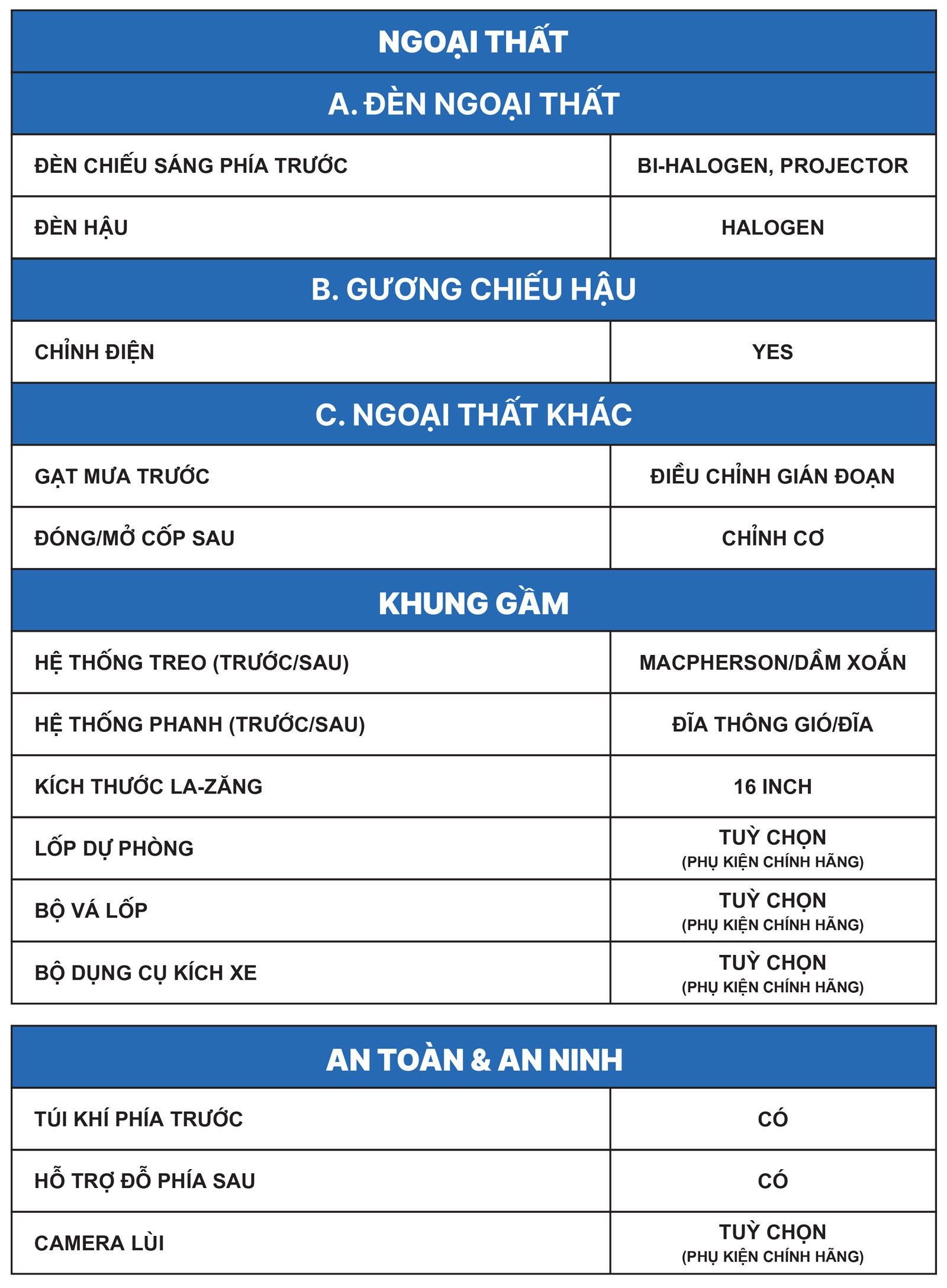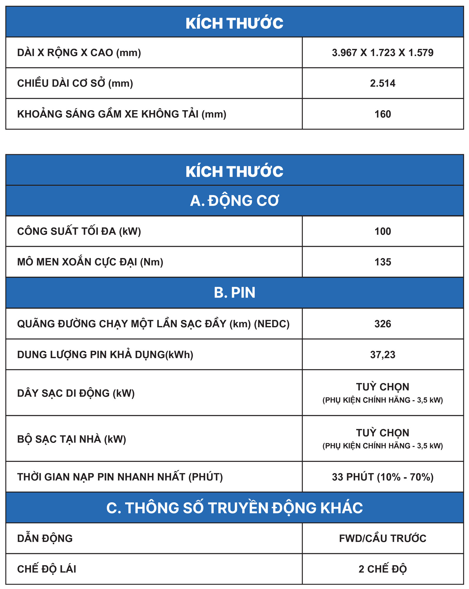 Thông số xe